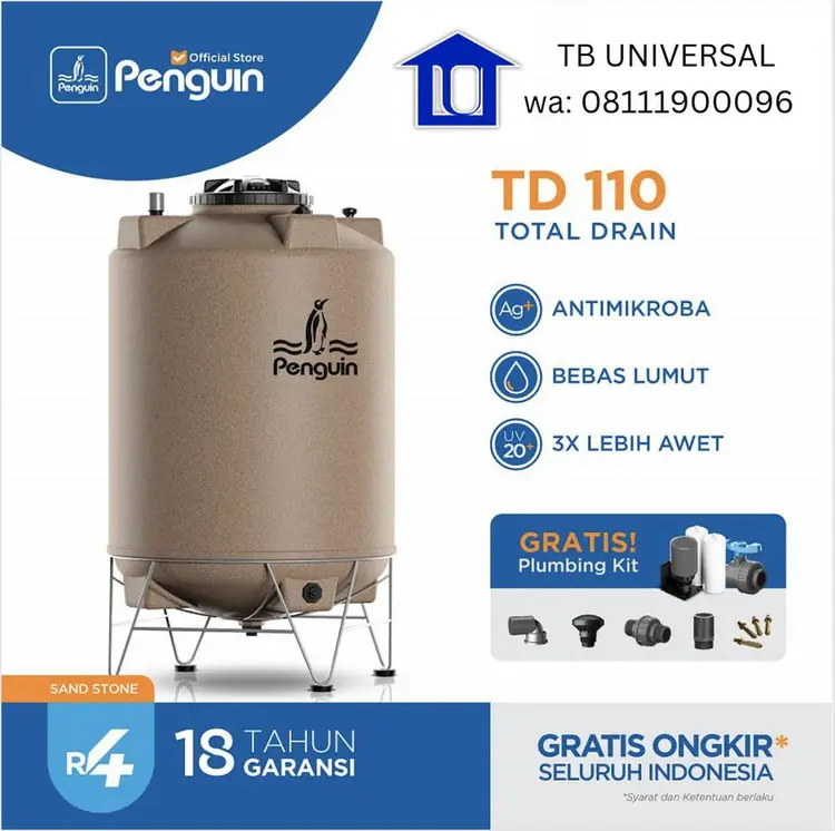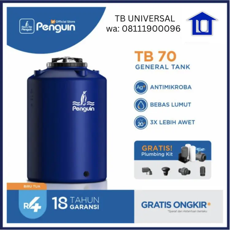Berfungsi sebagai penampungan air minum, tangki Penguin menggunakan konstruksi multi-layer dengan lapisan dalam PlascoBriteβ’ yang tidak menimbulkan bau atau rasa sekaligus menghambat pertumbuhan lumut.